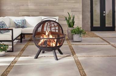 Offering 360-degree views of your fire, this global pit looks a bit like a floating fireball. It's also entirely enclosed in a mesh cage (with a large pivoting door) so you can rest assured rogue embers won't float up or into your face, but you can also easily refuel with logs when needed.