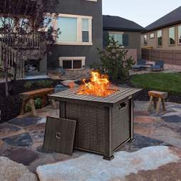 Part table, part fire pit, this 32"x32" setup is the perfect centerpiece for a larger crowd of gatherers. Its sturdy exterior metal frame acts as a lip to rest cocktails/snacks/s'mores fixins, while the the mesh-covered center part provides plenty of area to get a nice big wood-fueled fire burning. Plus, it comes with a poker to help you keep it properly stoked, and a cover to keep it protected from the elements when you're not using it.